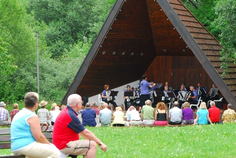 - Von April bis Oktober finden im Kurpark unsere Konzerte der Musikvereine statt.
